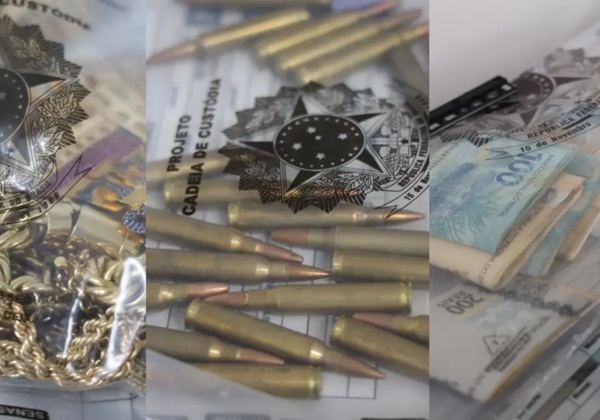 Foram recolhidos ainda 30 celulares, R$ 35,4 mil em espécie, três carros, três motocicletas e joias de ouro. Todo o material será periciado.