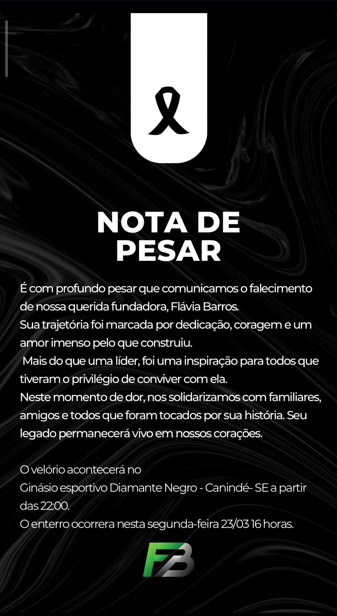 A empresa fundada por Flávia emitiu uma nota de pesar destacando sua trajetória de “dedicação, coragem e um amor imenso pelo que construiu”. O texto descreve a fundadora como uma inspiração e uma líder cujo legado permanecerá vivo.