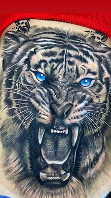 Uma nova pele! A modelo Andressa Urach usou as redes sociais para mostrar aos seus seguidores que cobriu toda sua barriga e pernas com novas tatuagens. A ex-panicat cobriu a região da barriga com o desenho de um tigre, com direito a olhos azuis.