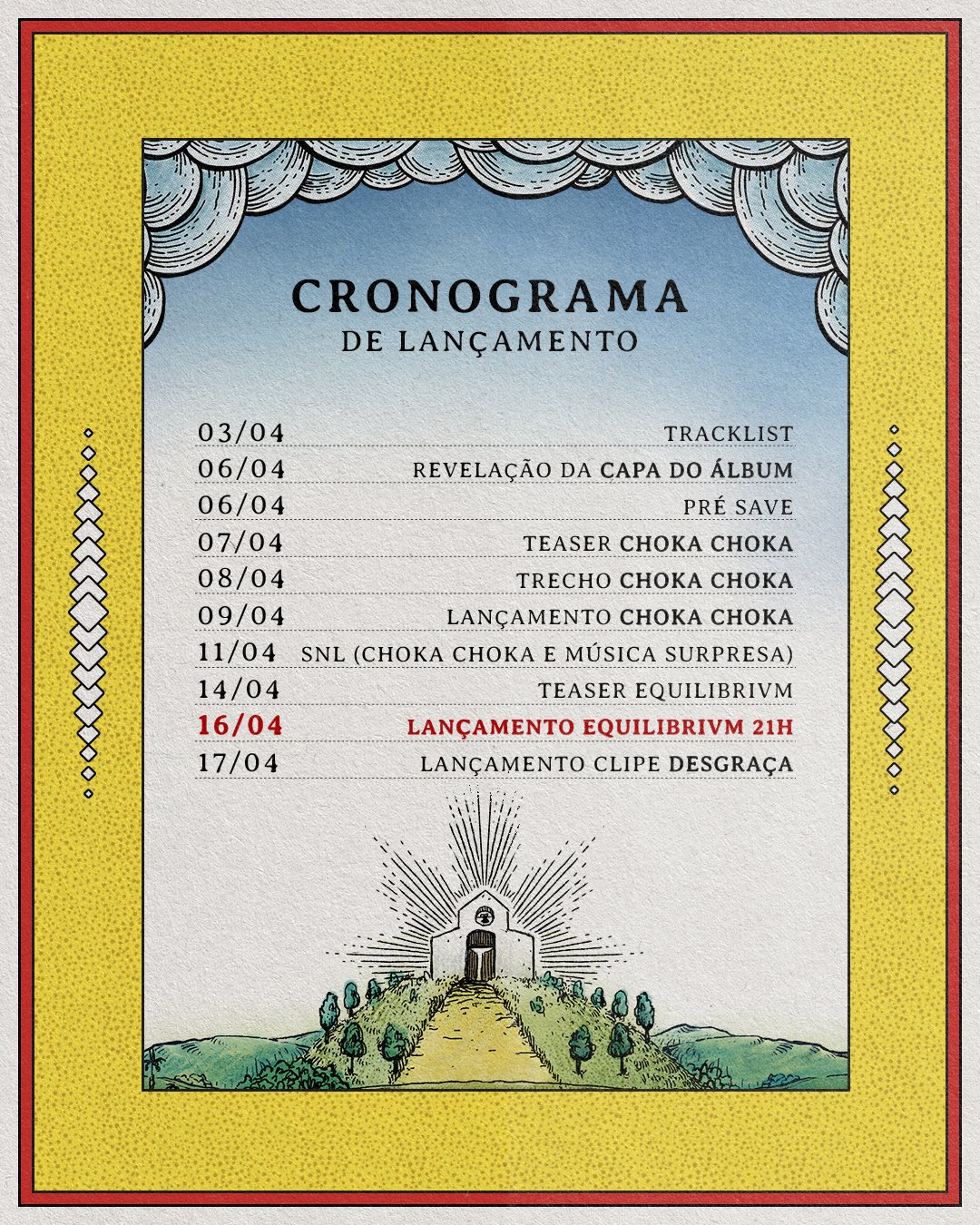 De acordo com o calendário divulgado, o cronograma começa no dia 3 de abril com a divulgação da tracklist. Já no dia 6, será revelada a capa do álbum, acompanhada da abertura do pré-save.