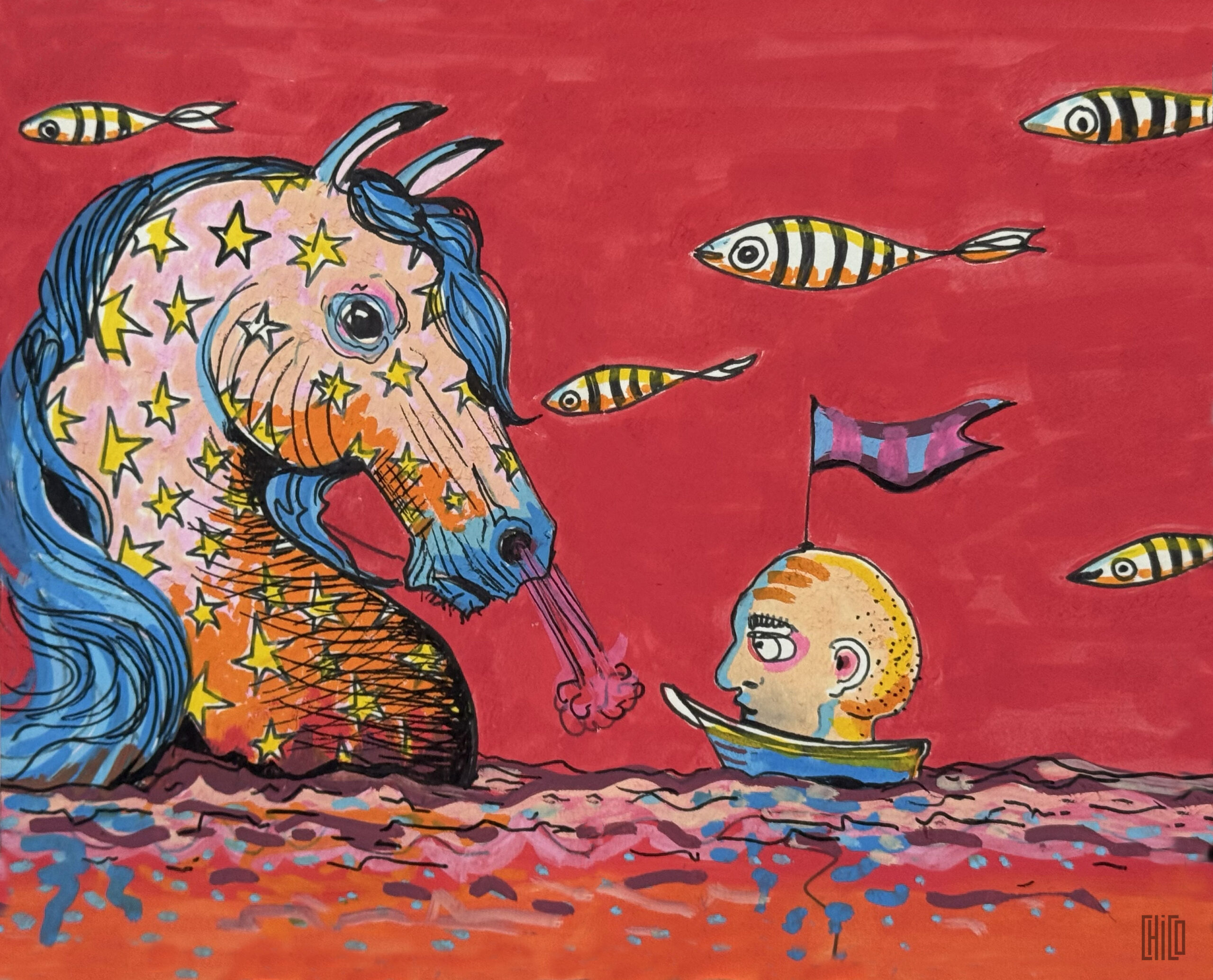 As ilustrações do artista já foram aplicadas em livros, revistas, estampas de roupas, móveis e até em uma escultura do projeto Cow Parade. Seu trabalho foi exibido no Brasil, Canadá, Estados Unidos, França e Alemanha, além de integrar o livro “Illustration Now 4”, da editora Taschen. Nascido em Porto Alegre e formado em publicidade, Baldini passou a viver em Salvador em 2023, onde realiza sua primeira exposição individual na cidade.