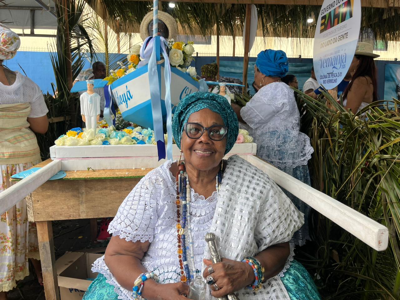 A mãe de santo destaca o tamanho da responsabilidade envolvida no preparo da oferenda. “Nós fazemos de tudo para sair direitinho, levar o presente e chegar no fim da tarde, que é o horário em que o presente sai. A gente fica, faz um xirê. Quando a gente chega, já fazemos um xirê aqui, que é uma obrigação que se faz quando se chega no domingo. E agora estamos esperando o momento de levar para entregar no mar, o presente de Iemanjá”, expressa.