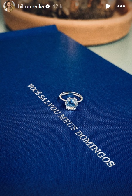 Já em seu instagram, Erika postou uma foto do anel de diamante que ganhou durante o pedido de casamento. A aliança veio acompanhada de uma mensagem, onde estava escrito: “Você salvou meus domingos”. A mensagem fazia referência a música da cantora Liniker, intitulada “Me ajude a salvar os Domingos”.