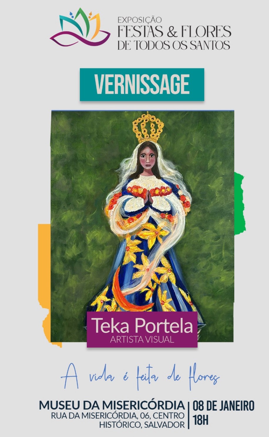 O Museu da Misericórdia recebe, entre os dias 9 e 31 de janeiro de 2026, a exposição “Festas e Flores de Todos os Santos”, da artista visual Teka Portela. A mostra reúne pinturas e instalações que dialogam com as festas populares, a fé e os símbolos que atravessam a formação cultural da Bahia. A abertura para convidados acontece no dia 8 de janeiro, às 18h, com apresentação musical de Amadeu Alves e Juliana Alves.