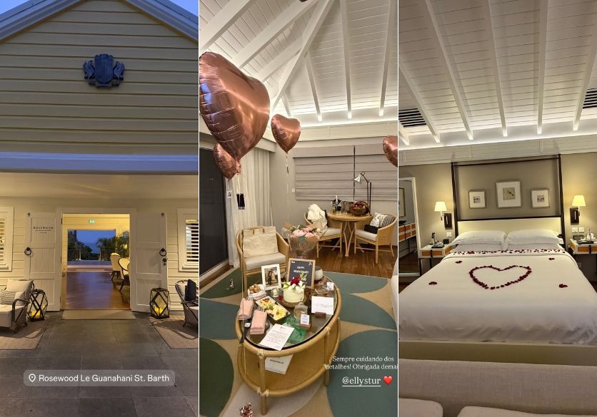 Nas redes sociais, a dançarina mostrou detalhes da chegada ao hotel Rosewood Le Guanahani, localizado em Saint-Barthélemy. O local é conhecido por suas praias paradisíacas e por concentrar resorts de alto padrão.