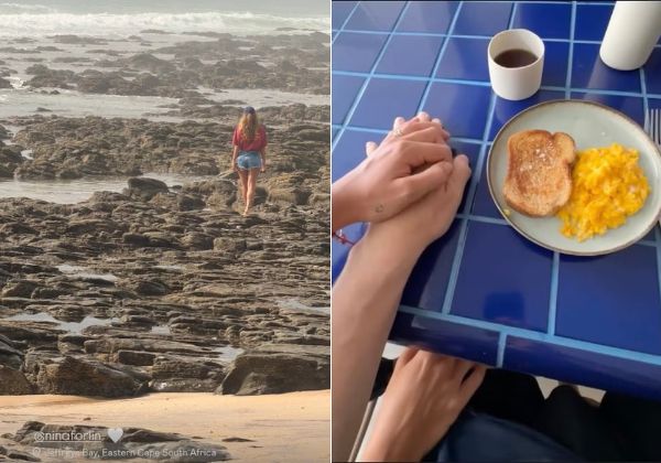 Nos stories do Instagram, ele compartilhou uma foto de mãos dadas com a publicitária Nina Forlin e, em seguida, publicou uma imagem da companheira na praia, acompanhada de um emoji de coração.