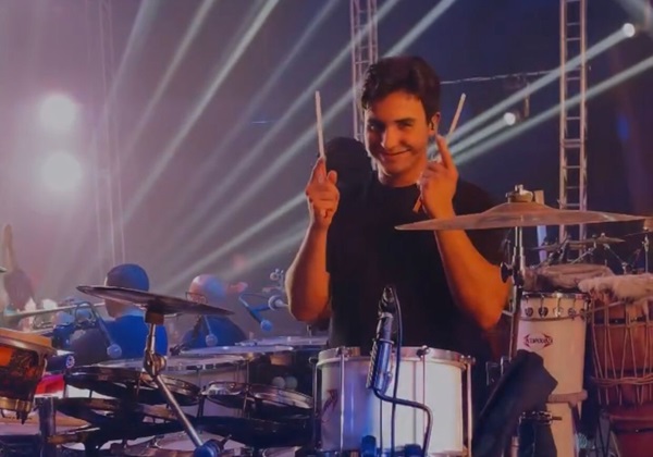 O "Cria da Ivete" já atua como percussionista na banda da mãe
