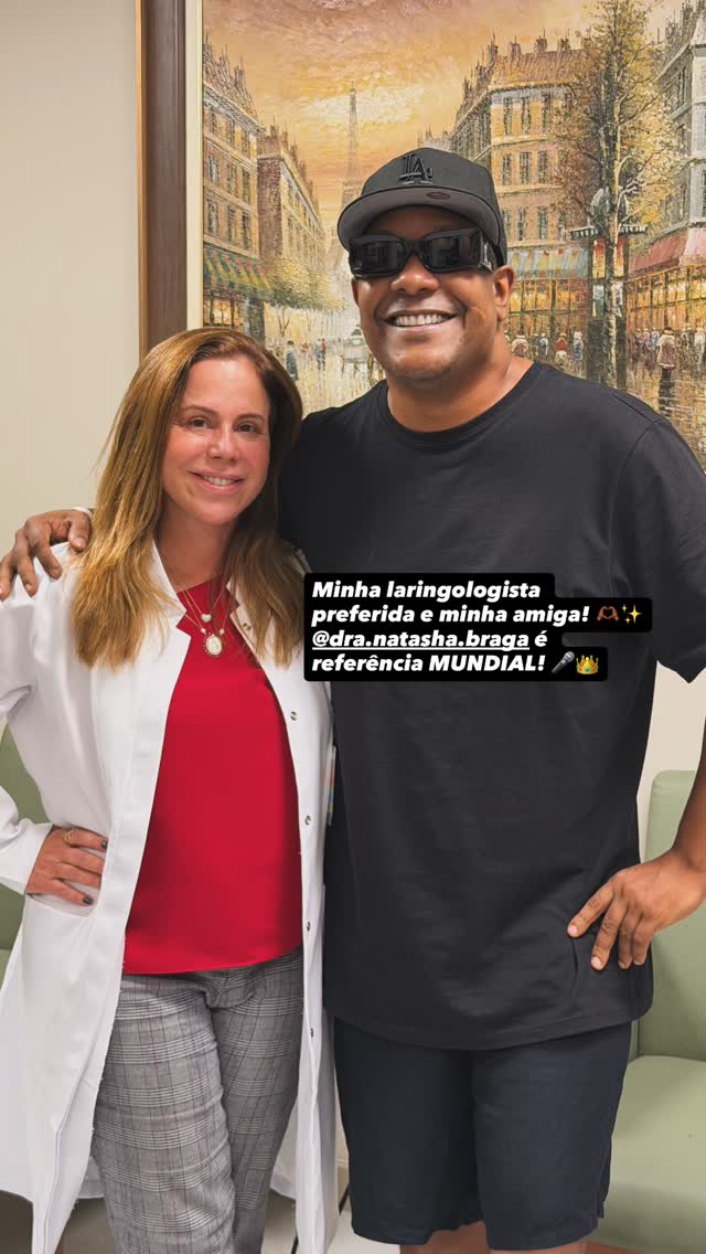 Pouco depois, o artista voltou a aparecer nos stories e revelou que foi ao hospital realizar exames de rotina. Na sequência, compartilhou uma foto ao lado da laringologista Natasha Braga. “É referência mundial”, escreveu o cantor.