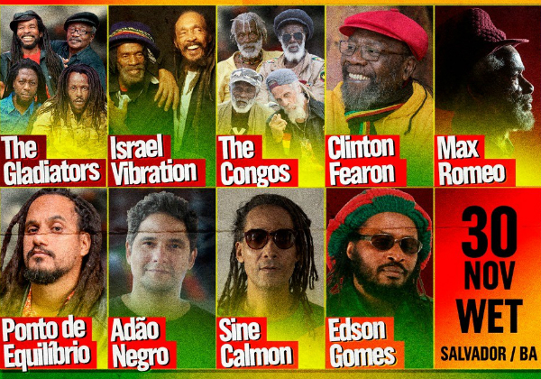 Diretamente da Jamaica, berço do reggae mundial, as bandas The Congos e The Gladiators, trazem a essência do movimento para Salvador. Quem também se junta as bandas são os artistas Max Romeo, Clinton Fearon e Israel Vibration