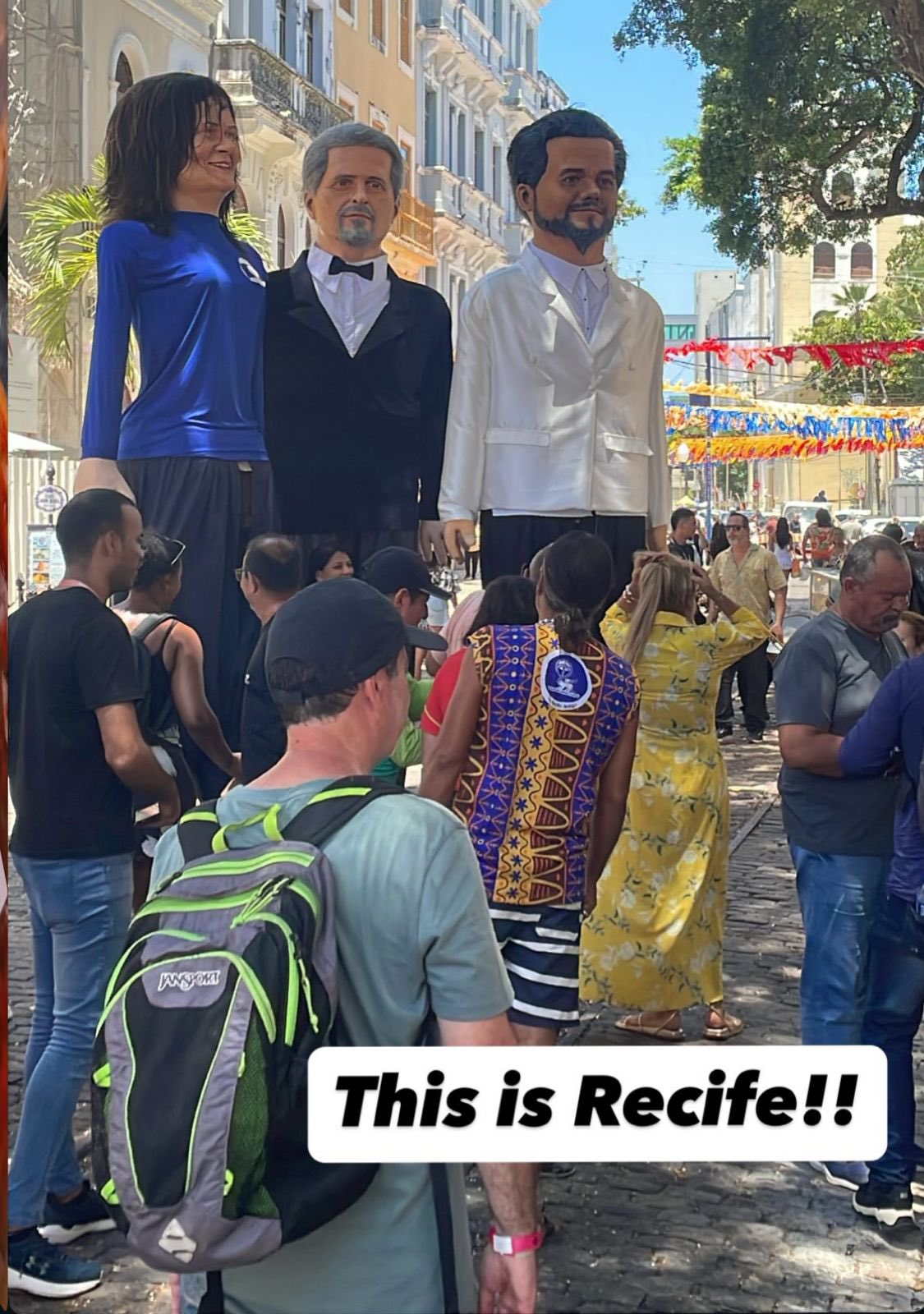 “Não me perguntaram, não pediram autorização, acho uma esculhambação. Viramos boneco gigante no Carnaval, eu e Wagner. Adoro”, brincou Kleber Mendonça Filho na legenda da publicação feita no Instagram e no X (antigo Twitter).