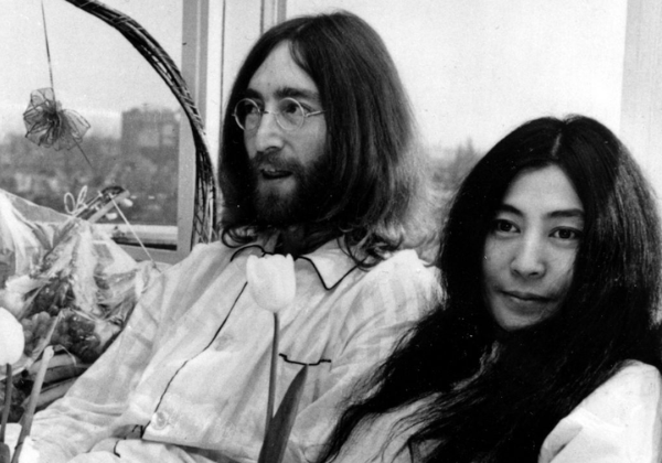 Nas duas luas de mel – as célebres Bed‑ins for Peace em Amsterdã e Montreal –, eles ficaram deitados por uma semana enquanto recebiam a imprensa e defendiam o fim da Guerra do Vietnã. Lennon explicou que, se iria aparecer nos jornais, “ao menos que fosse pela paz”. No segundo bed‑in, gravou Give Peace a Chance com participantes como o ativista Dick Gregory, canção que se tornou hino dos protestos contra a guerra. Pouco depois, eles lançaram a campanha War Is Over! If You Want It e, com o Harlem Community Choir, a música natalina Happy Xmas (War Is Over).