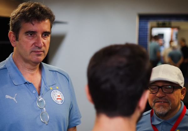 Antes do início do jogo, o dirigente foi visto no gramado da Arena Fonte Nova avaliando as condições do campo e conversando com membros da diretoria.
