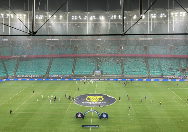 A nova grama, estreada na goleada do Bahia sobre o Grêmio por 4 a 0, mostrou mais uma vez sua qualidade, garantindo boas condições de jogo mesmo sob chuva intensa.
