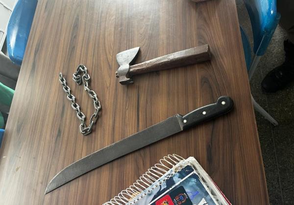 PM apreende estudante com machado, facão e corrente na mochila