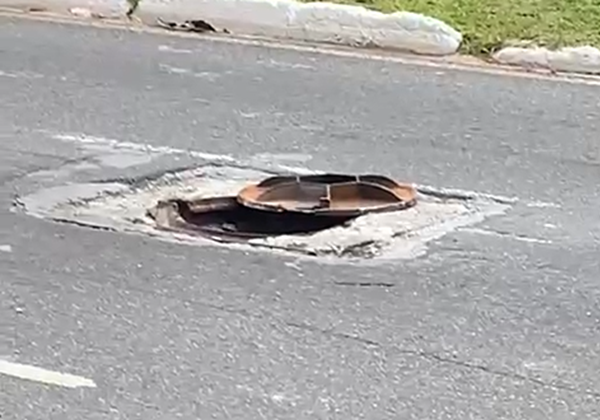 O equipamento faz parte do sistema da Embasa e se abriu após a base de cimento apresentar rachaduras, comprometendo a sustentação e provocando a abertura do buraco. A situação representou risco para condutores e motociclistas que circulavam pela via, uma das mais movimentadas da capital baiana.